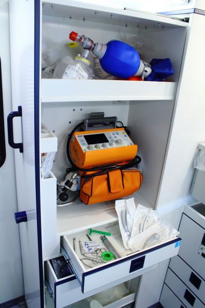 Nachfolgend können Sie einen Rettungswagen des RKSH von innen erkunden. Klicken Sie zur Vergrößerung direkt auf das gewünschte Bild.