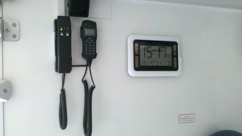 Auf dem zweiten Foto sind die abgesetzten zweiten Sprechstellen (Funknebenstellen) im Patientenraum der RTWs zu sehen.